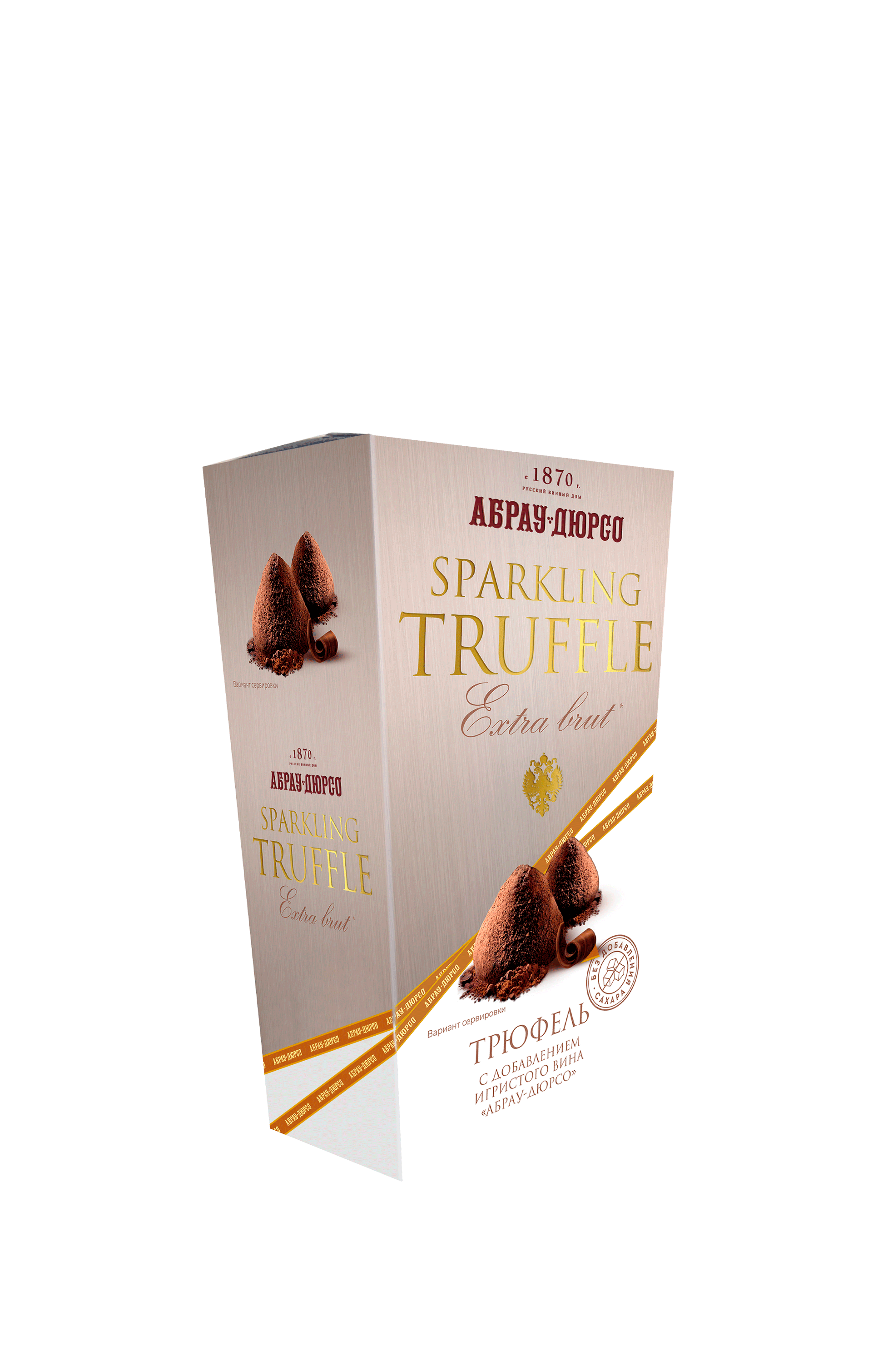 “Sparkling Truffle” are candies with a touch of “Victor Dravigny” sparkling wine by Abrau-Durso which redefine the classic recipe. “Sparkling Truffle” features a wonderful fusion of rich chocolate and cocoa flavors with elegant notes of “Victor Dravigny Extra Brut” sparkling wine that gives these candies its subtle fresh acidity and a unique mix of flavors on the palate. The tart and noble taste of these candies is followed by long and elegant finish.