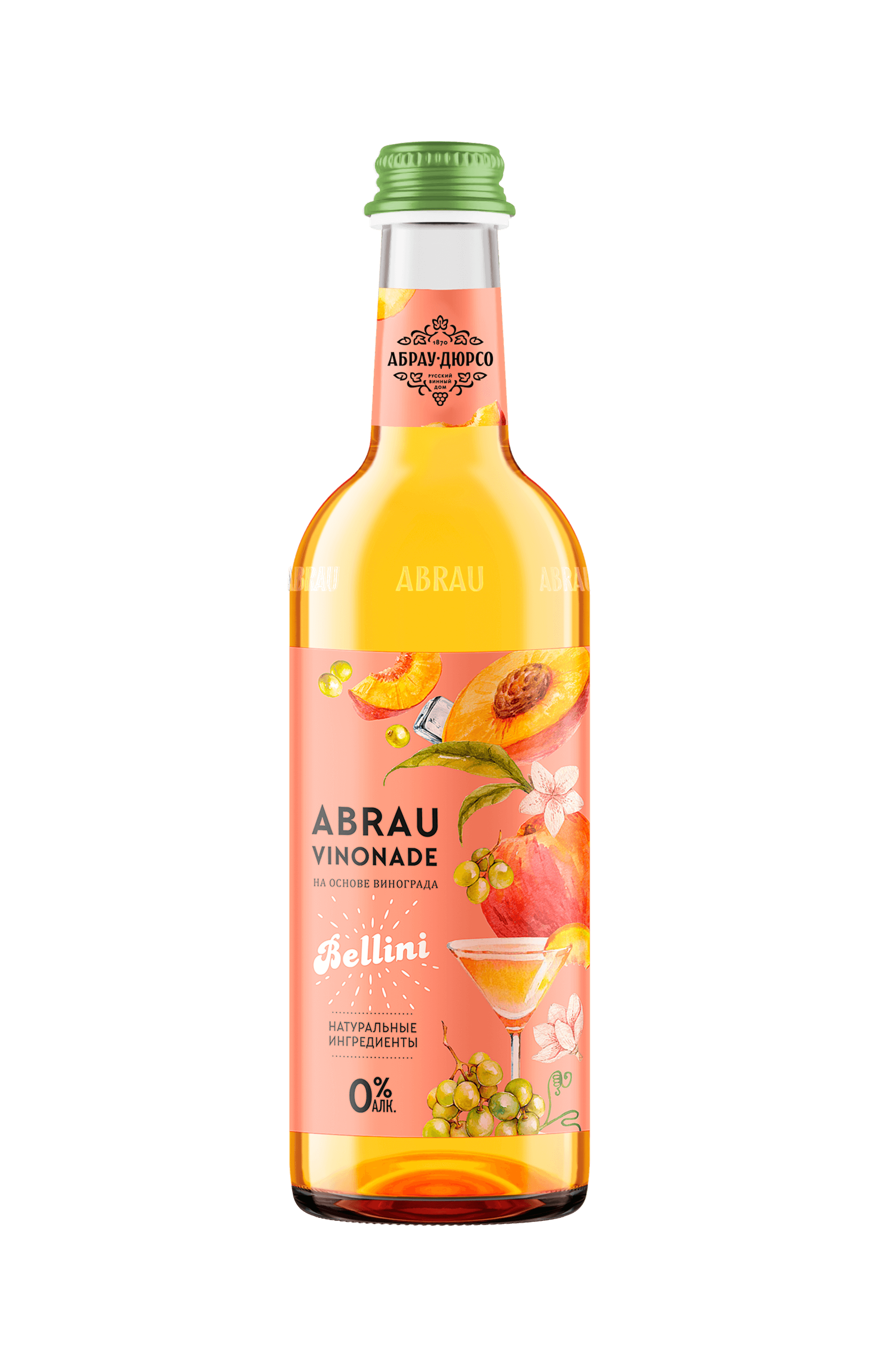 Abrau Vinonade Bellini is a refreshing non-alcoholic drink inspired by the world-famous Bellini cocktail. The taste has a wonderful balance of ripe peach and the delicate tartness of the grapes. Does not contain alcohol.