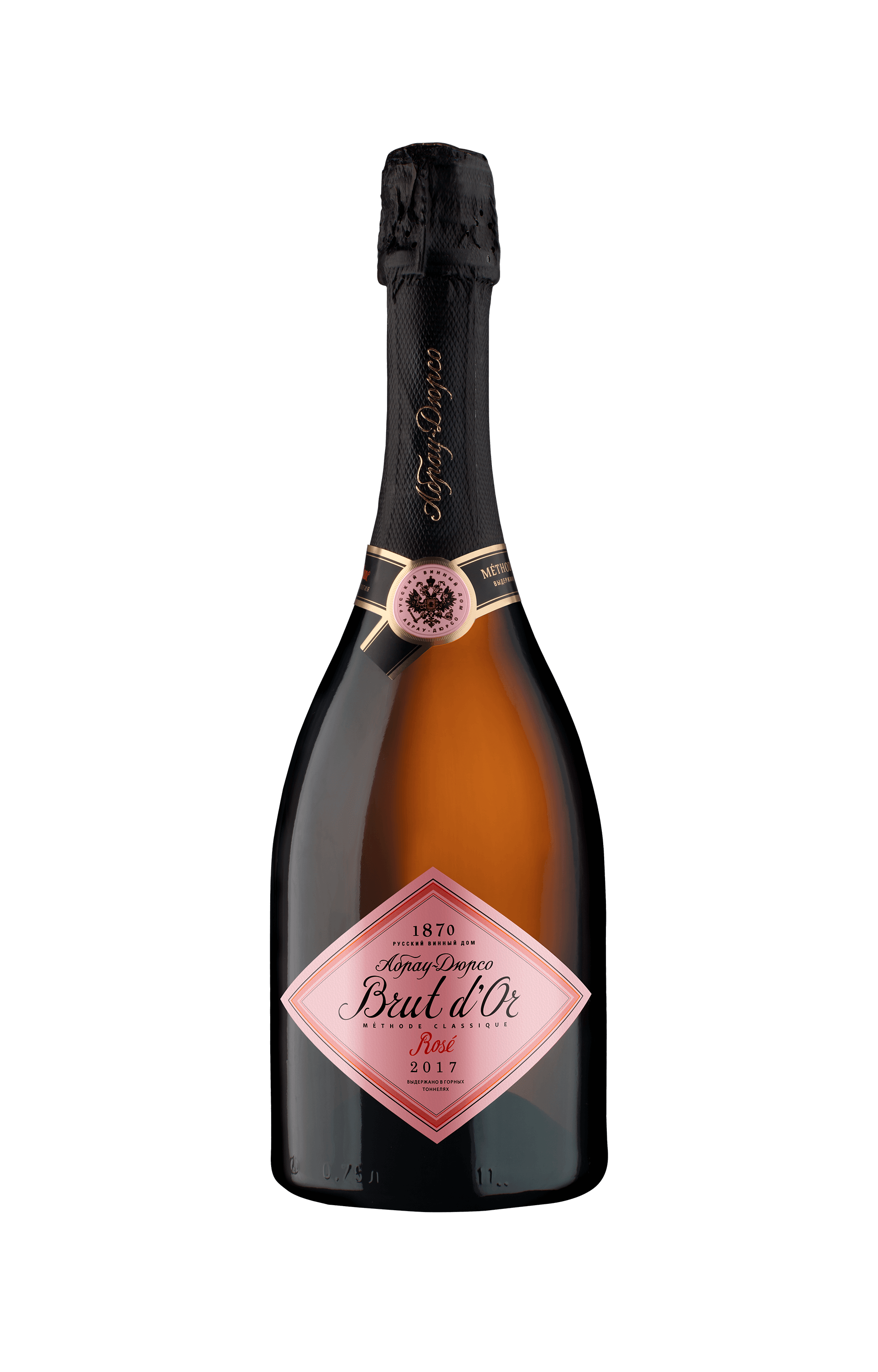 Sparkling wine of delicate pink color with a pale golden hue, fine, fine perlage and persistent mousse.